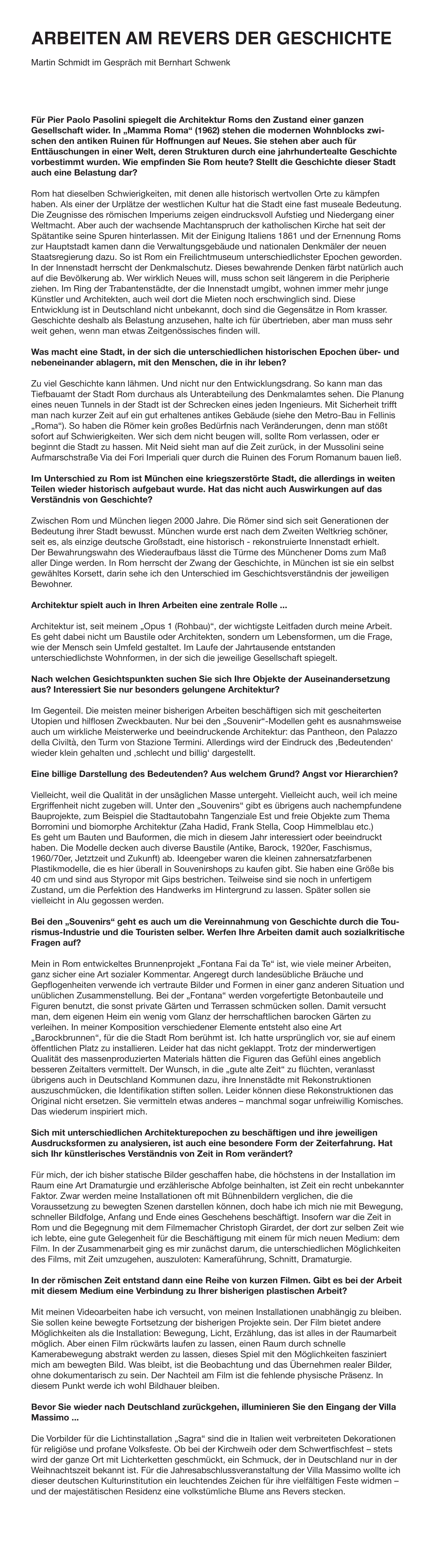 ARBEITEN AM REVERS DER GESCHICHTE, Bernhart Schwenk